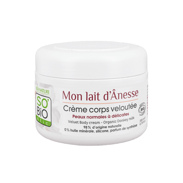 Питательный крем для тела с ослиным молочком, алоэ, маслом ши и маслом авокадо So’Bio для нормальной и сухой кожи гарантирует коже питание и защиту от неблагоприятного воздействия внешних раздражителей.