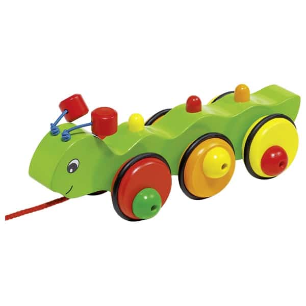 Игрушка на веревочке как верный товарищ, который подбадривает малыша делать первые шаги! Развивает координацию движений, равновесие и укрепляет мышцы. Так как гусеница едет сзади, то малыши освоят пространство, находящееся за их спиной. Придумывание различных игровых сюжетов улучшает воображение и фантазию.