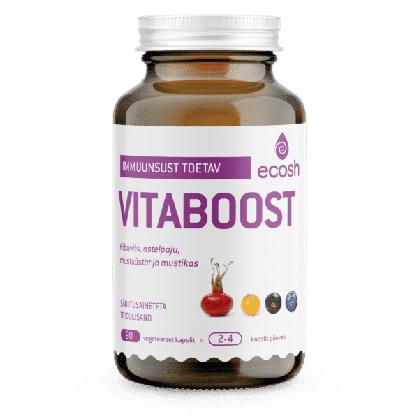 VitaBoost on tõeline vitamiinikokteil Eesti väemarjadest – kibuvitsast, astelpajust, mustikast ja mustast sõstrast. Vita Boost kapslid sisaldavad rohkelt antioksüdante, vitamiine ja mineraalaineid – esindatud on muuhulgas C, A, E ja B-rühma vitamiinid, kaltsium, raud, magneesium, kaalium, tsink, rasv ja aminohapped.