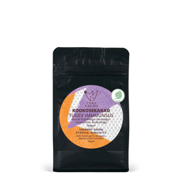 Kookoskreemiga vegankakao, millesse lisatud mustsõstar, kurkum ja must küüslauk on tuntud oma immuunsust tugevdavate ja antioksüdantsete omaduste poolest.
