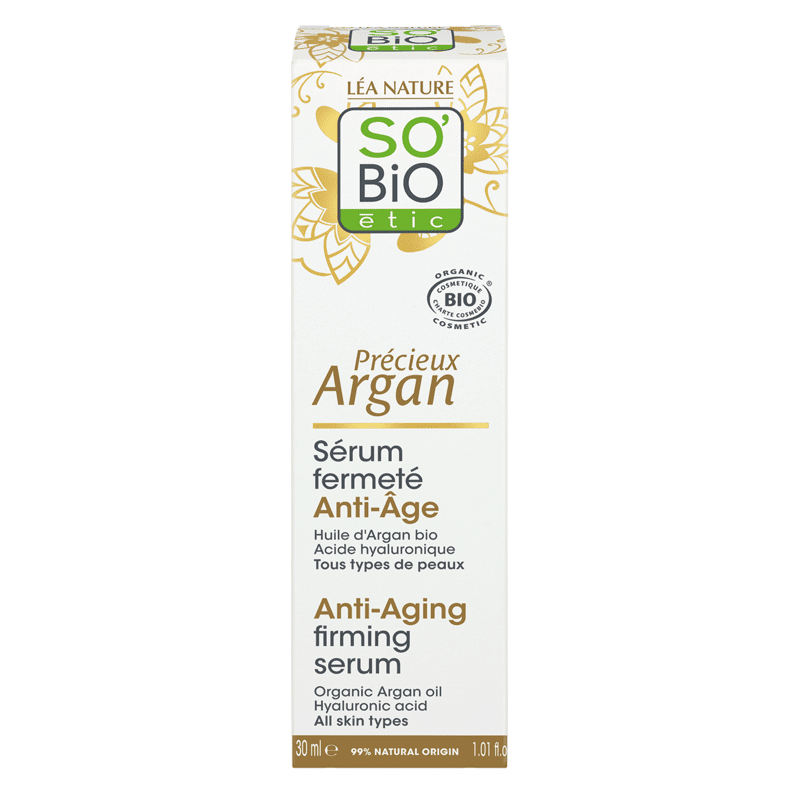 SO’BiO étic Argan Firming Serum is vegan, animal testing free and Cosmebio / Ecocert certified.